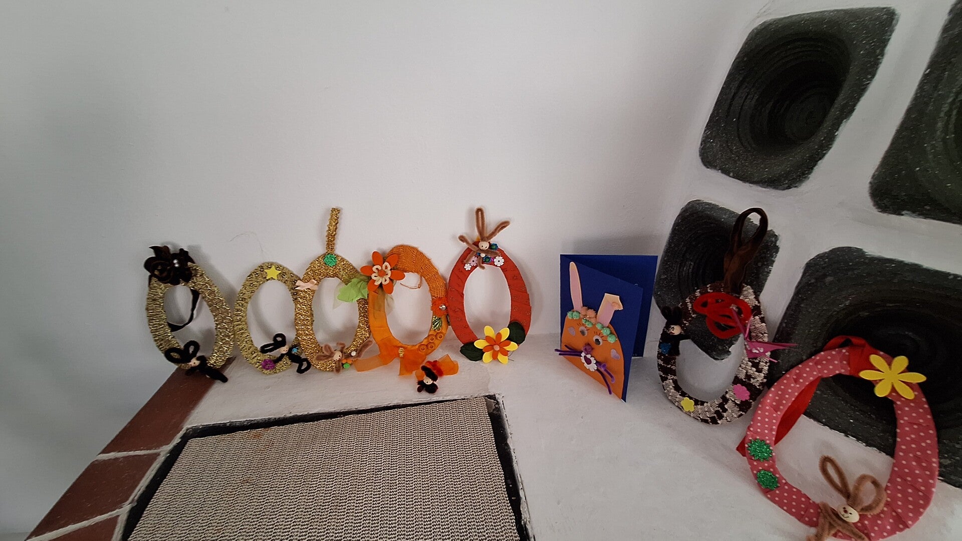 Osterei - als Türkranz - aus Pappkarton und mit bunten Bändern umwickelt - eine tolle Idee, auch als Geschenk